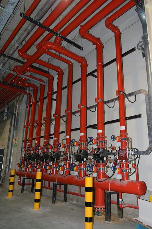 olarak tasarlanan sprinkler sistemleri, yangın dolapları,